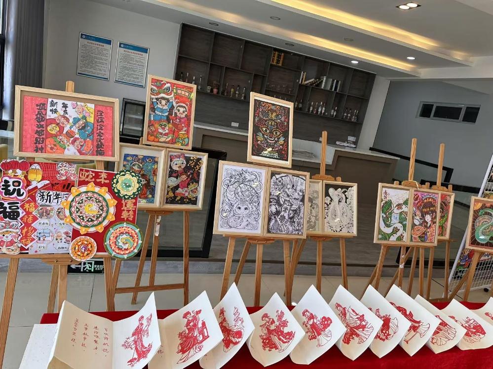 画展的作品内容丰富,形式多样。蜡笔画、水彩、水粉画等绘画作品色彩缤纷,生动活泼,展现了鸭脖学生的艺术才华和情感表达。此外,非遗剪纸等传统手工艺品也以其独特的艺术魅力,为画展增添了别样的风采。每一张作品都充分体现了学生们的审美价值和对汉字之美的深刻理解,以及他们扎实的书写基本功和审美情操。