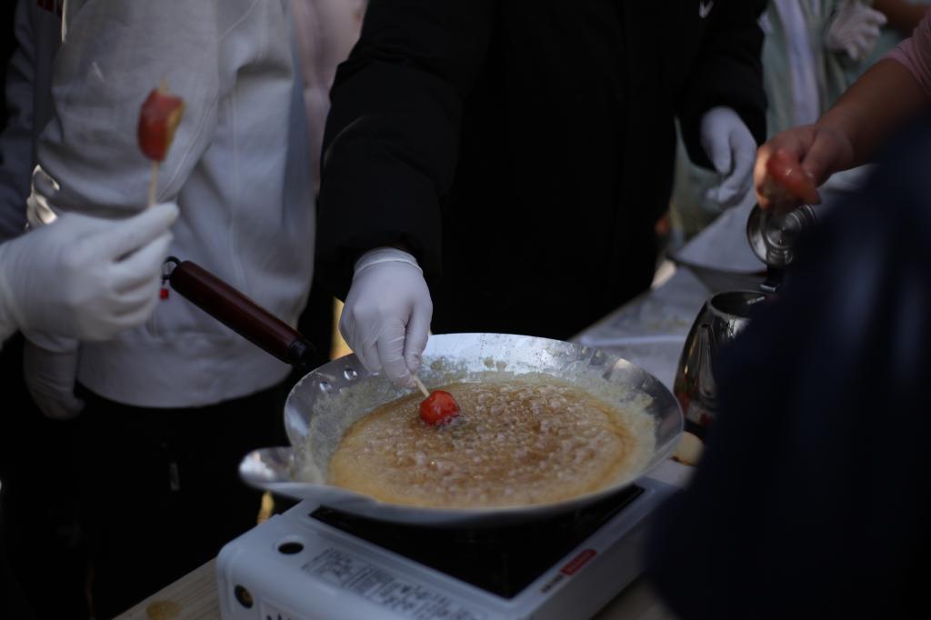 与此同时,趣味体验区以“沉浸式互动+传统文化普及”为主线,设置了武术展示与表演、茶文化体验、DIY糖葫芦、飞花令、投壶、蹴鞠、围棋、五子棋、篆香、夹玻璃珠等十余项活动。参与者手持集章卡,在游园式的体验中穿梭于各社团精心设计的文化场景,通过“集印章兑体验”的形式,零距离感受传统文化的魅力。现场气氛热烈,欢声笑语不断,传统与现代在互动中交相辉映。