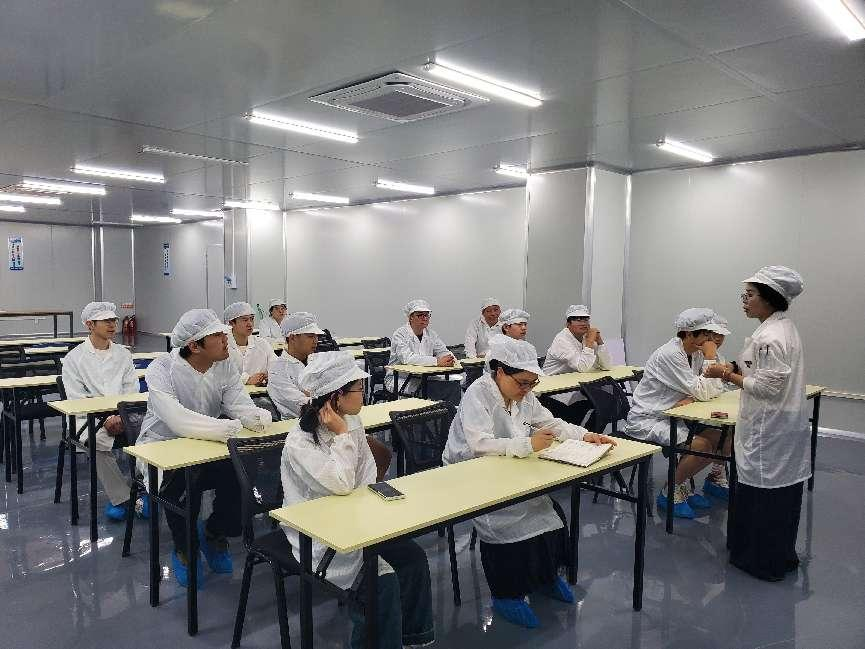 学院师生分成四组深入企业生产一线,全方位了解岗位的工作流程与内容。从荧光膜制作到Mini灯带的的制造工艺,每一个环节都让师生们真切感受到理论与实践结合的重要性。
