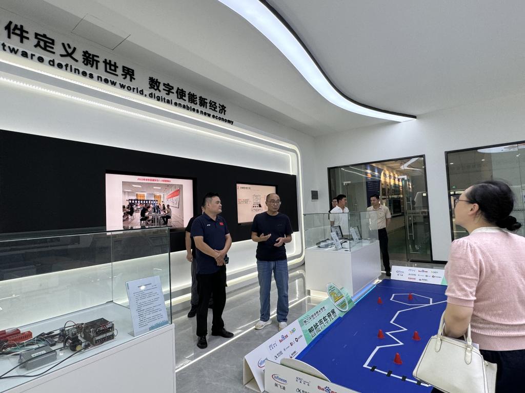 调研组一行来到南京工业职业技术大学嘉环产业学院,实地参观了5G数字化人才产教科融合基地、工业物联网研创中心、5G技术研创实训室等教学科研实训中心,详细了解了基地在专业建设、人才培养、师资队伍建设及本科层次职业学校创建等方面的经验做法,为鸭脖升本工作推进具有重要的借鉴意义。