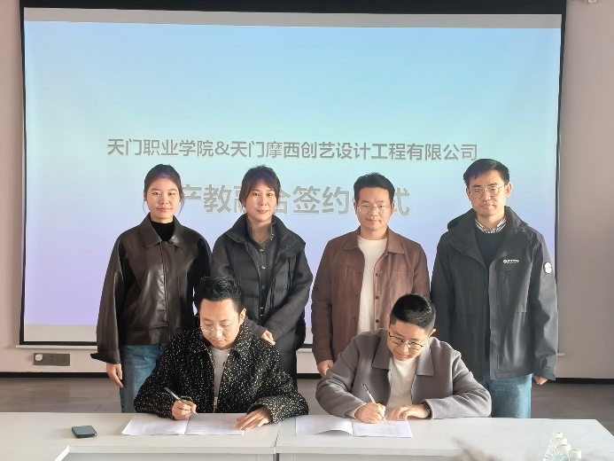 仪式上,摩西创艺董事长谭振对学院一行表示欢迎、详细介绍了企业发展历程、业务领域及人才需求。鲁碧舫表示,学院将全力推动合作落地,为企业输送高素质技术技能人才,助力企业高质量发展。胡伟伦介绍了学院专业建设、人才培养及科研服务等方面的优势,强调校企合作是深化产教融合、提升人才培养质量的关键举措,希望以此次签约为契机,实现资源共享、优势互补。随后,双方代表签订校企合作合同,明确将在实习就业、课程共建、实训基地建设等方面开展全方位合作。