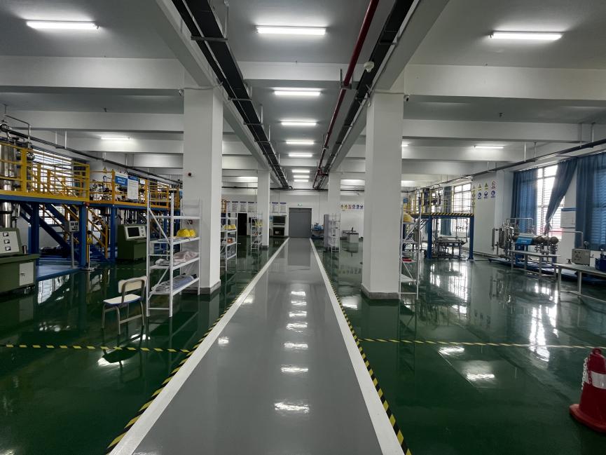 学院目前建有天门市智能制造(化工类)高技能人才公共实训基地,配备了国内领先的产教融合实践平台。基地集教学、培训、技能竞赛于一体,拥有机泵拆装实训装置、换热器维修装置、化工仪表调校设备、流体输送单元操作装置、传热单元操作装置以及氯化、磺化、胺基化、重氮化等五大危险工艺的智能制造实操装置,并配备了完备的化工安全特殊作业培训设施、危险处置VR体验设备及应急救援培训系统,为学生提供了紧贴生产一线的实战化教学环境。