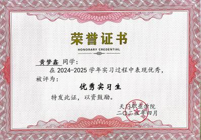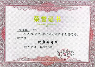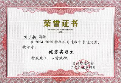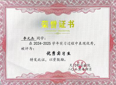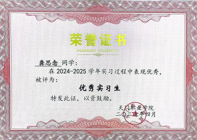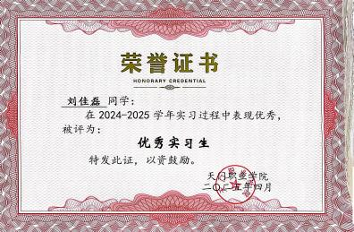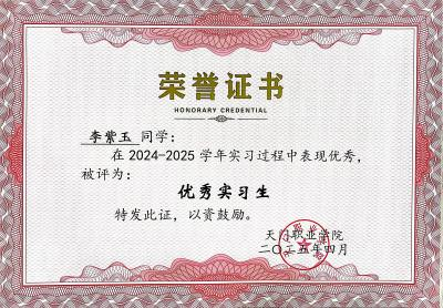 目前,“优秀实习生”荣誉证书已印制完成,并由辅导员发放给获奖学生本人。