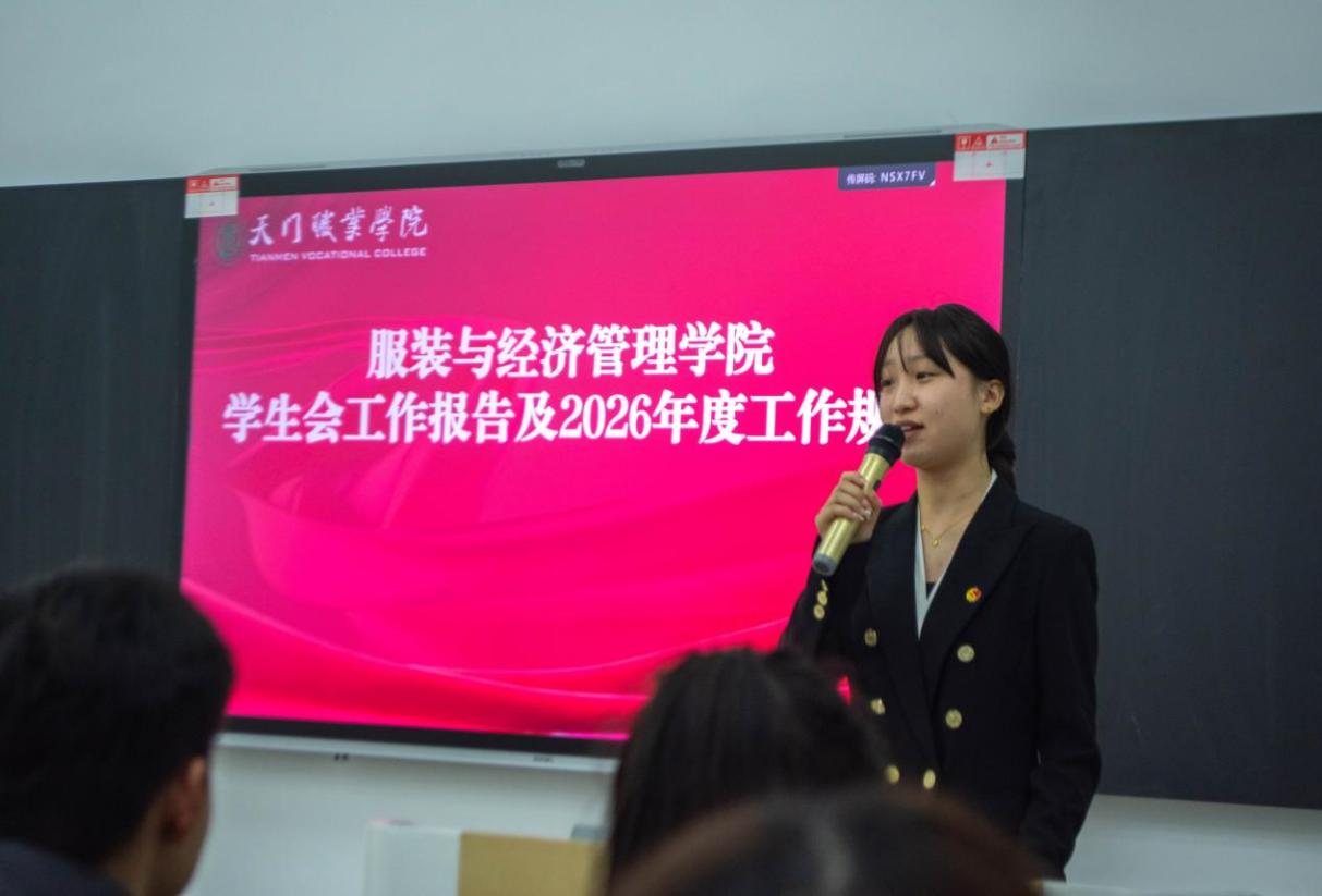 郭旭慧同学代表学生会作《服装与经济管理学院学生会205年工作报告及2026年度工作规划》。全体代表认真听取并审议了该报告,充分肯定了学生会过去一年在思想引领、学风建设、校文化等方面的工作成果。